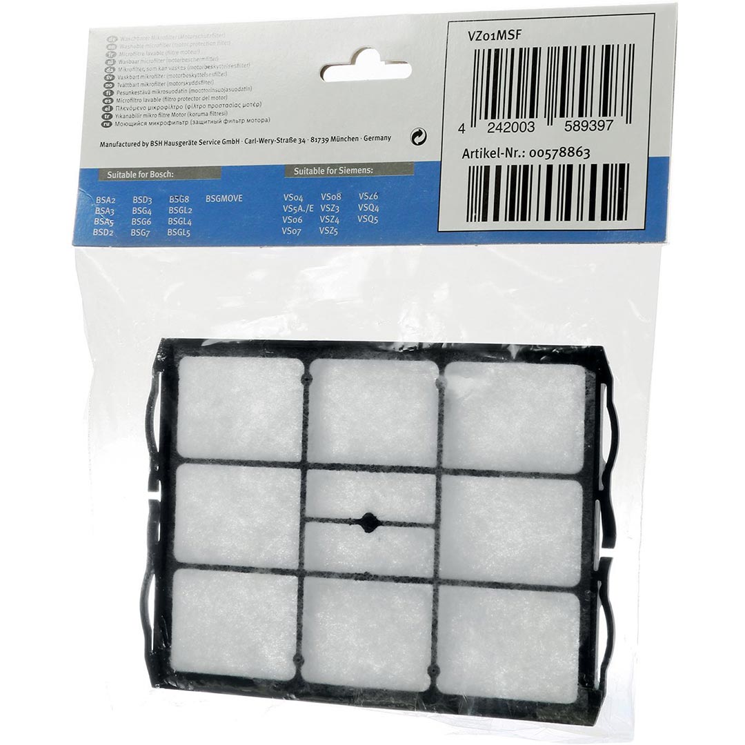 Мікрофільтр для пилососа підходить для пилососів Bosch серії BSA2..., BSA3..., BSA5..., BSD2..., BSD3..., BSG4..., BSG6..., BSG7..., BSG8..., BSGL2..., BSGL4..., BSGL5..., BSGMOVE...