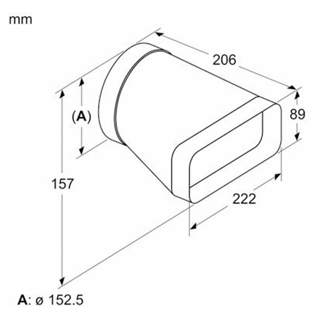 Перехідник для з'єднання плоских/круглих повітропроводів, чорний, Ø150 мм