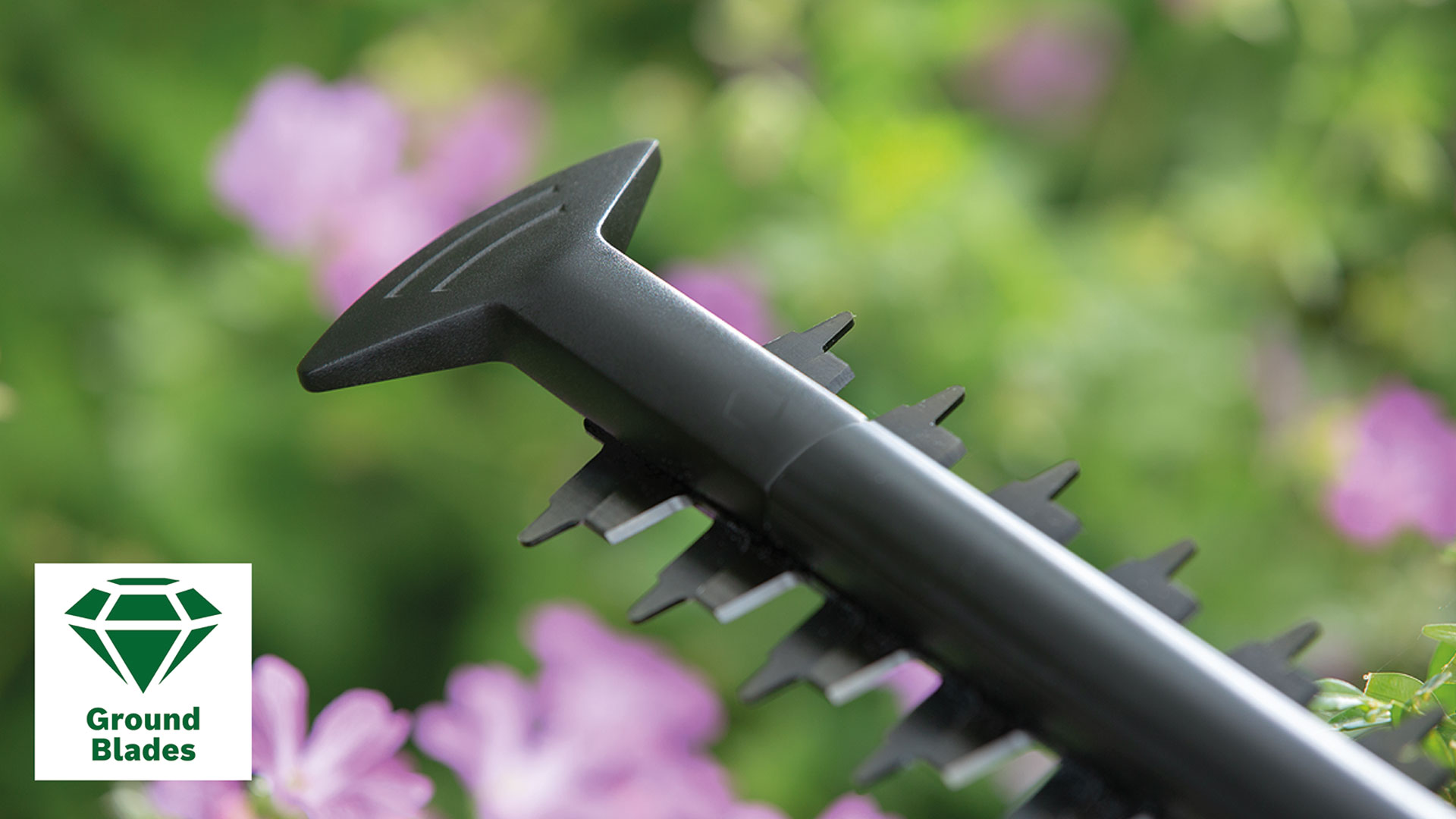 Неперевершена потужність: двигун з високою частотою обертання та відстань між ножами у 16 мм забезпечує необхідну потужність різання як молодого й малого живоплоту, так і кущів середнього розміру.