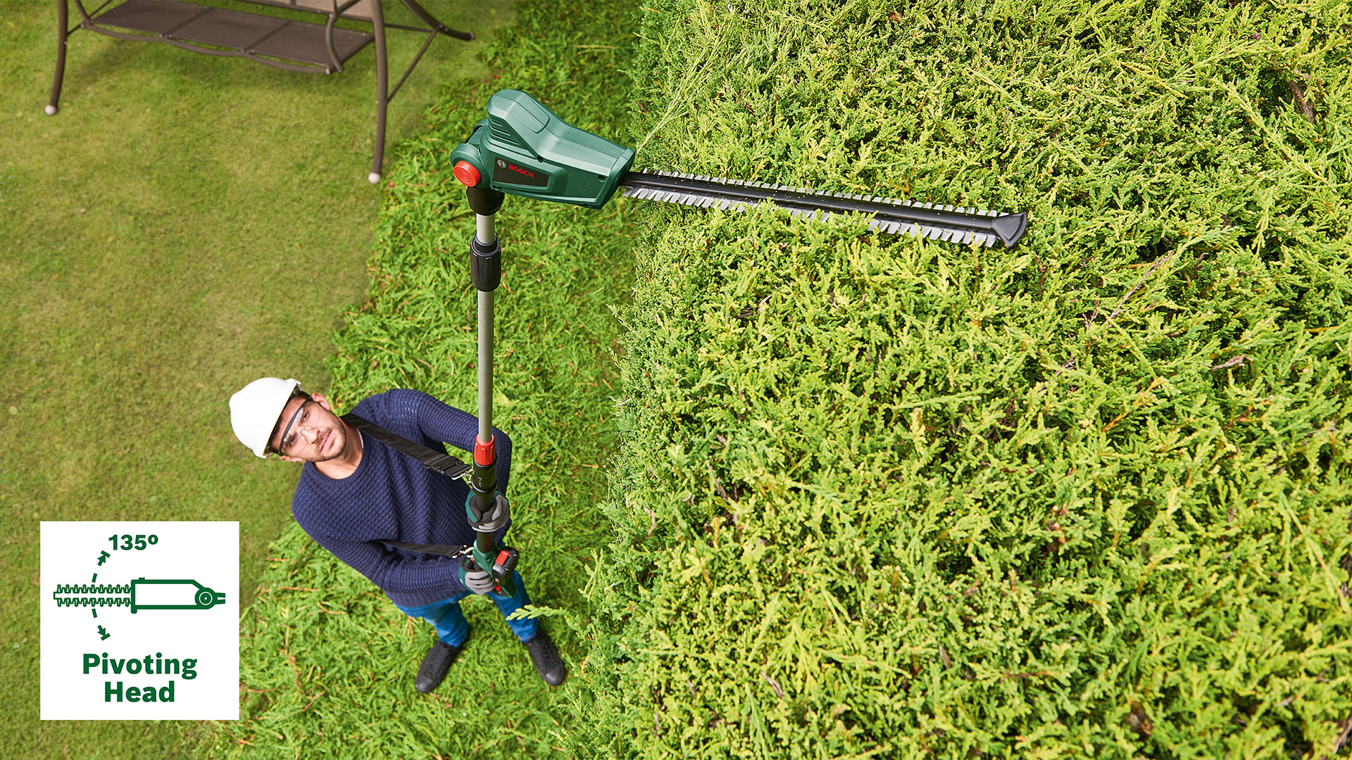 • Висока продуктивність і можливість роботи на висоті для підрізання без зусиль високих живоплотів