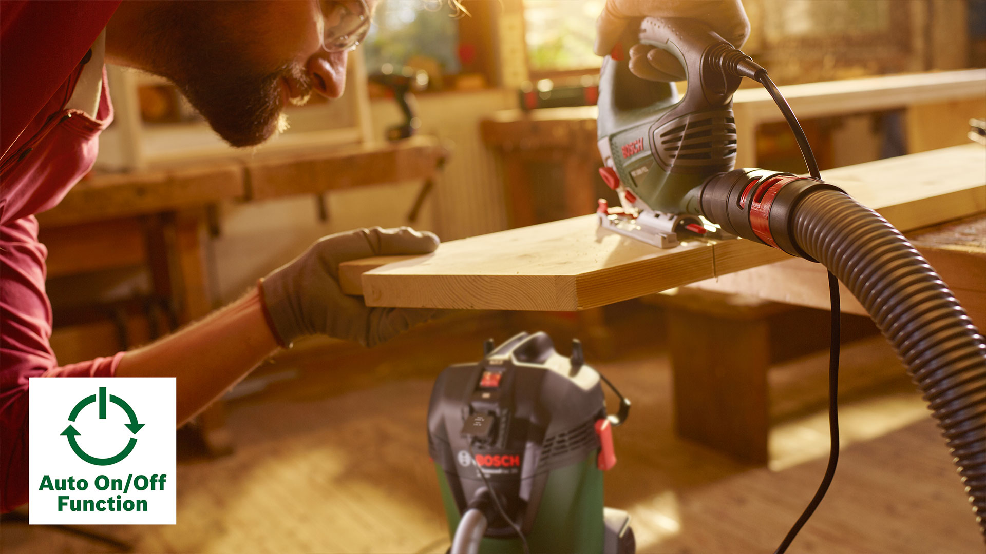 • Автоматично вмикається і вимикається при використанні електроінструменту