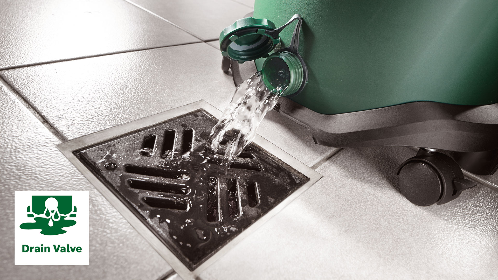 • Дренажний клапан дозволяє ефективно зливати великі об'єми води