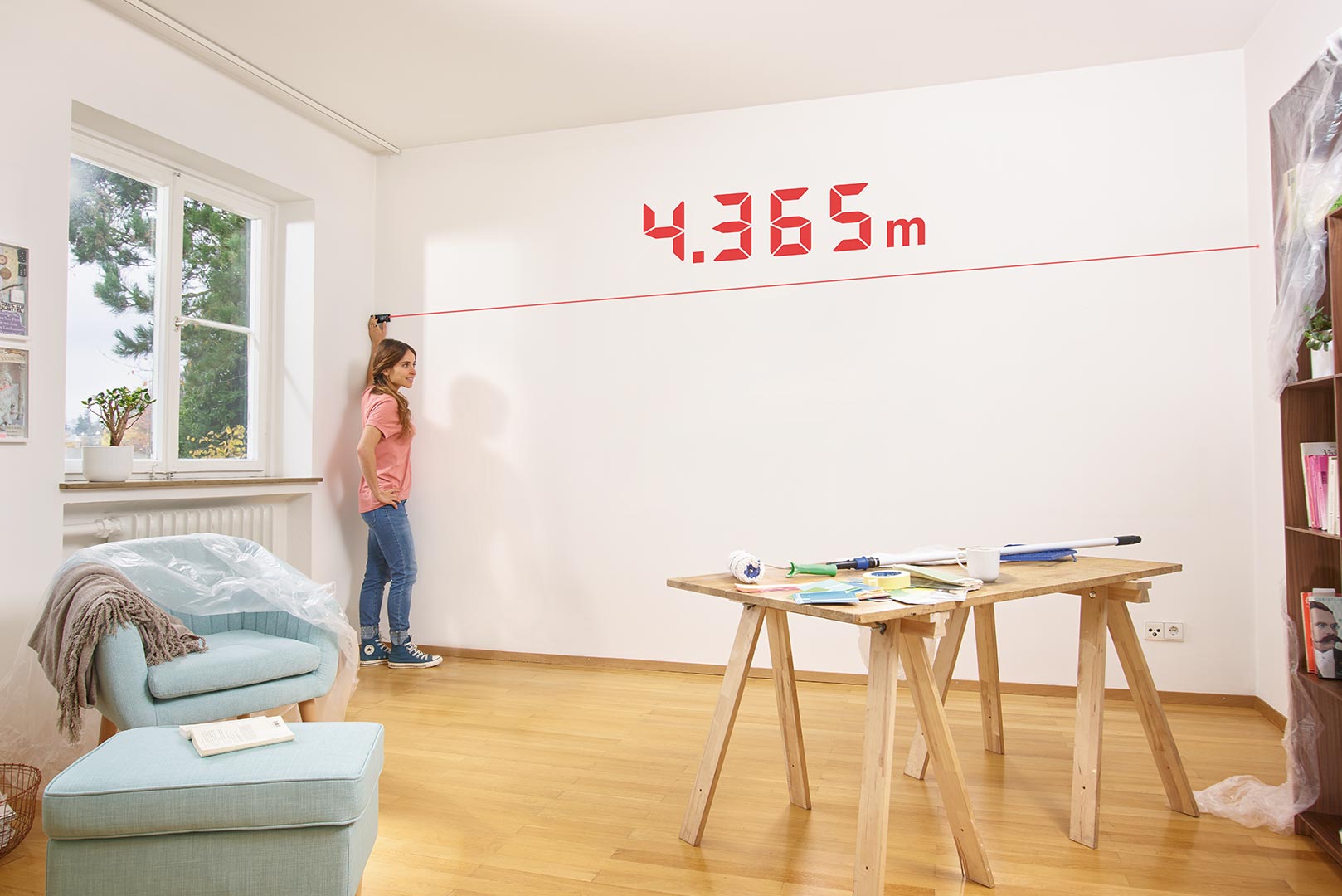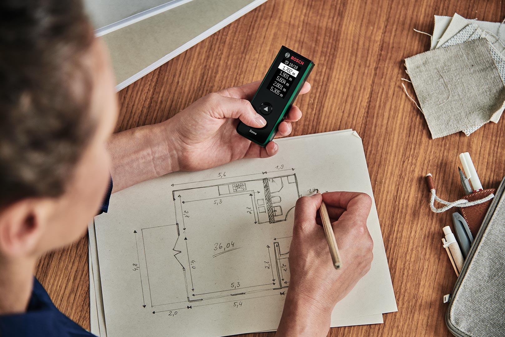 За допомогою лазерного далекоміра Zamo легко визначити довжину або висоту приміщення для розміщення меблів, а також розрахувати потребу в підлоговому покритті або фарбі під час ремонту. Розмістивши, направивши і натиснувши кнопку, Zamo точно вимірює відстані до 25 метрів.