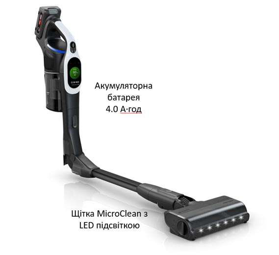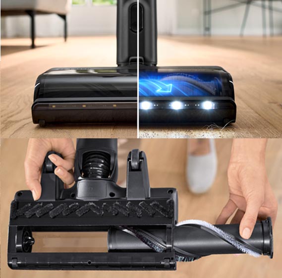 • Щітка MicroClean із LED світлом: універсальна електрична насадка із захистом від заплутування волосся для ретельного очищення всіх типів підлоги.