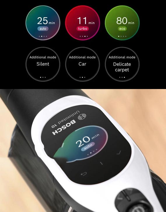 • Авто режим: щітка регулює продуктивність в залежності від типу підлоги: килим або тверда підлога. Найкраще рішення щодо роботи та продуктивності, залежно від того, що потрібно для ідеального результату прибирання