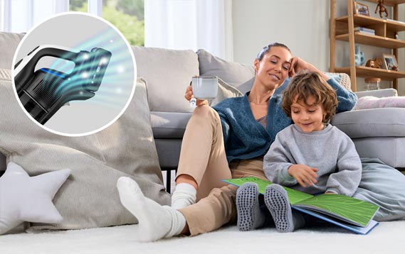 Завдяки Система фільтрації HEPA повітря у вашій оселі завжди буде чистим А завдяки функції RotationClean*, легко та швидко очищуйте фільтр без необхідності його мити