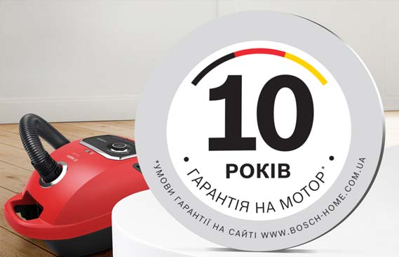 Розробляючи та виробляючи наші високопродуктивні двигуни в Німеччині вже понад 65 років, ми не тільки очікуємо, що пилосос забезпечить оптимальні результати, але і буде довговічним, що ми гарантуємо нашою 10-річною гарантією на двигун (за умови реєстрації на сайті виробника) *