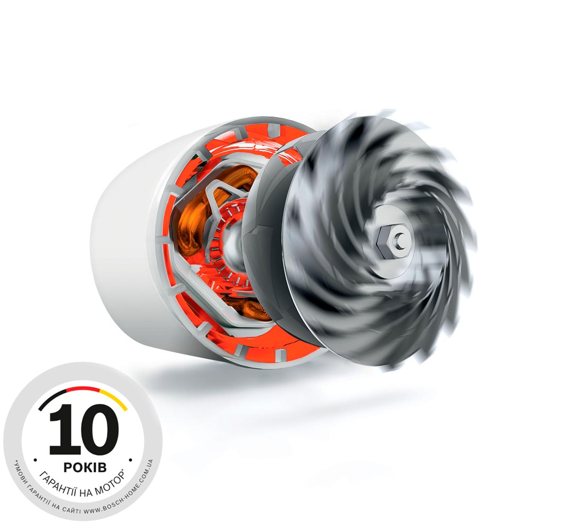 • 10-річна гарантія на мотор *: незмінно висока ефективність технології виробництва моторів Bosch. Вироблено в Німеччині.
