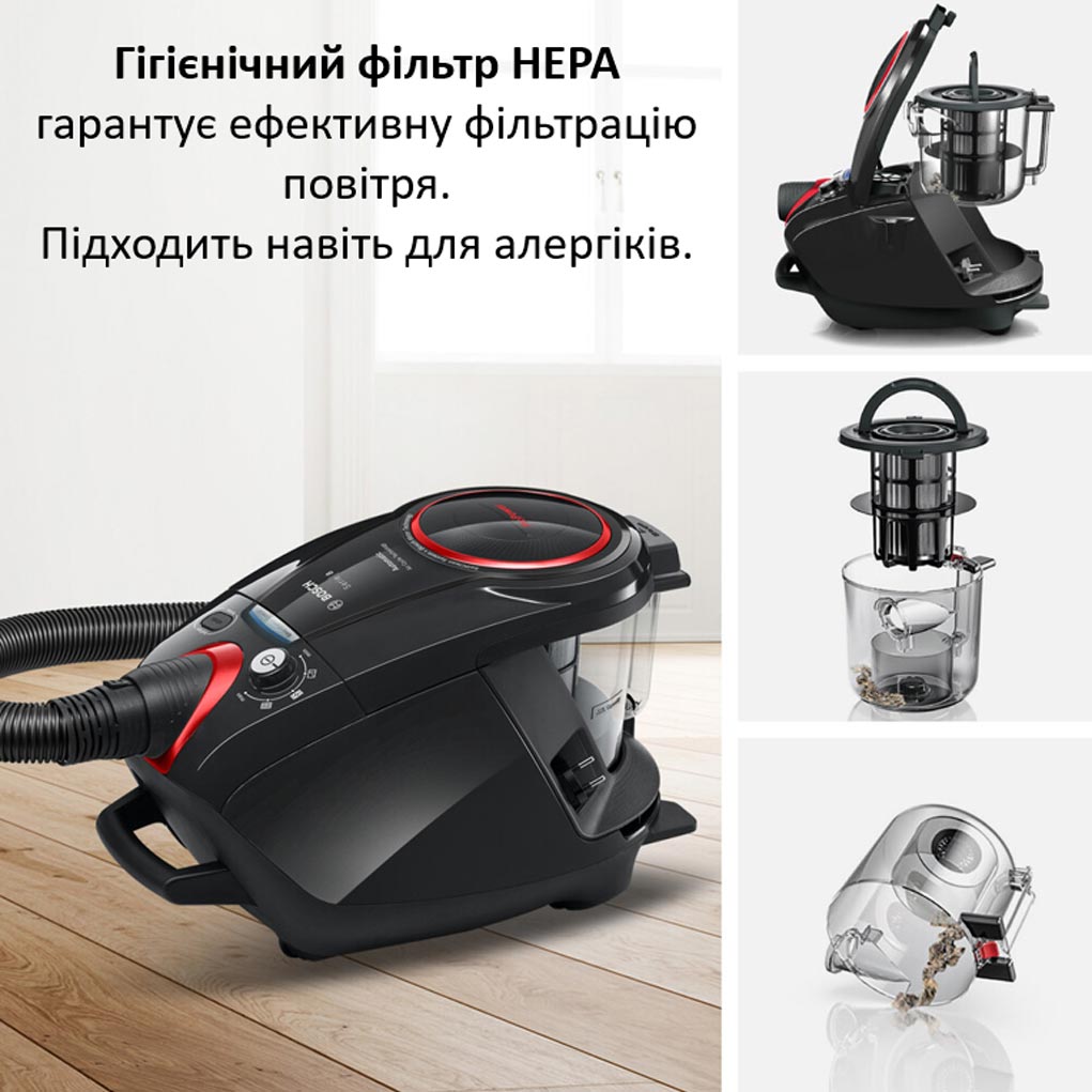• Гігієнічний фільтр HEPA: високий рівень фільтрації для чистоти відпрацьованого повітря. Підходить для людей, які страждають від алергії.