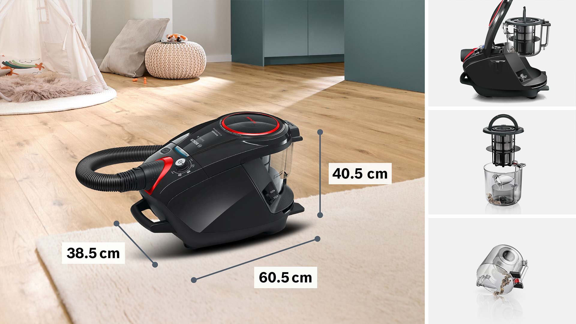 • Високоефективний та швидкий пилосос без мішків для пилу SmartSensor Control: мінімізує обслуговування. Без додаткових витрат