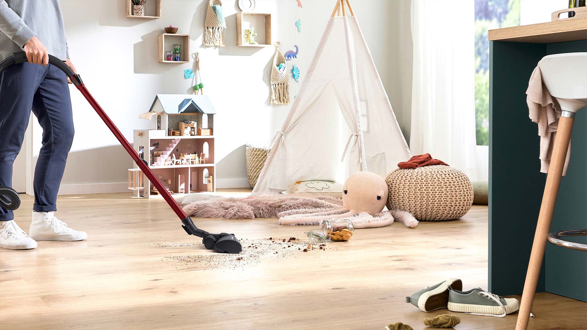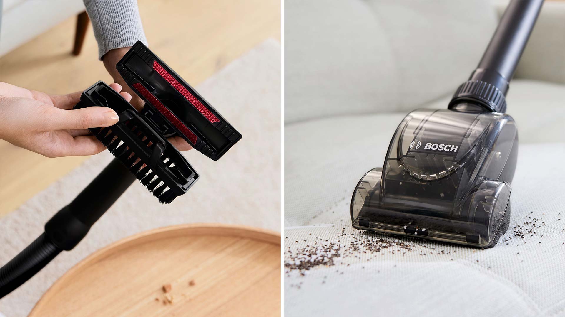 Чистити килими складно, але не з турбощіткою Bosch. Ця потужна насадка на 50% краще видаляє волокна, забезпечуючи вашим килимам глибоке очищення, на яке вони заслуговують.