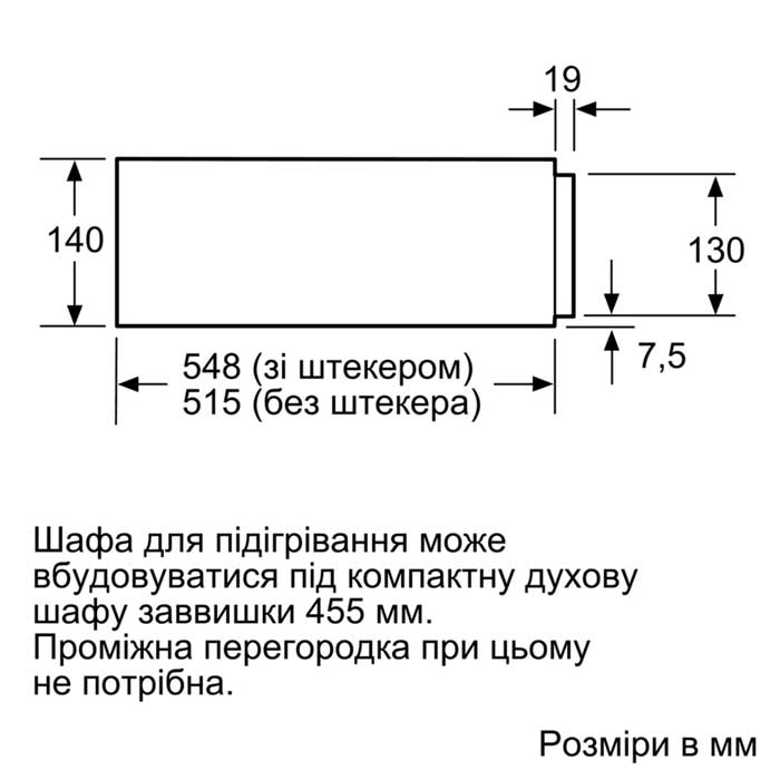• Розміри приладу (ВхШхГ) : 140 мм x 595 мм x 548 мм