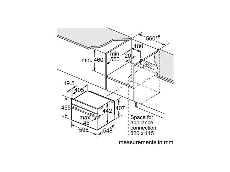 Размеры ниши (ВxШxГ): 450 мм - 455 мм x 560 мм - 568 мм x 550 мм