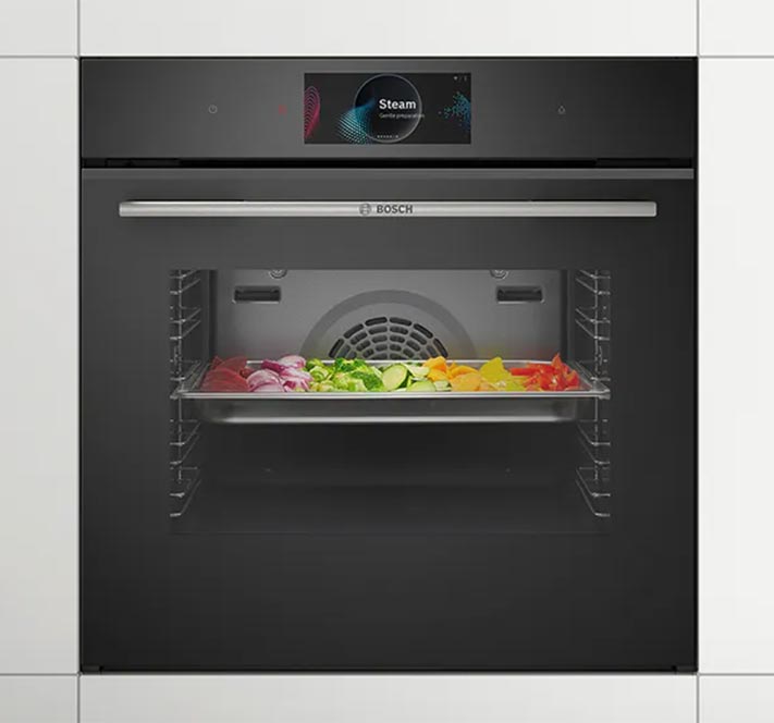 Духові шафи Bosch досягають класу енергоефективності A+* завдяки оптимізованій циркуляції повітря, кращим матеріалам, з яких виготовлено прилад, і поліпшеним ізоляційним властивостям – все це забезпечує значне зниження енергоспоживання.