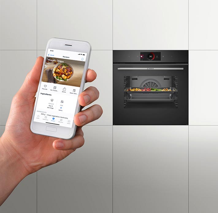 Нові страви тепер можна готувати значно простіше. Для рецептів уже прописано рекомендований вид нагрівання, температуру і тривалість готування. Запустити процес можна одним дотиком у застосунку. Улюблені рецепти можна позначати, об’єднувати у колекції, робити до них нотатки. Перелік необхідних продуктів можна додавати до списку покупок, щоб точно нічого не забути. Щоб повною мірою користуватися рецептами, необхідно створити акаунт у Home Connect.