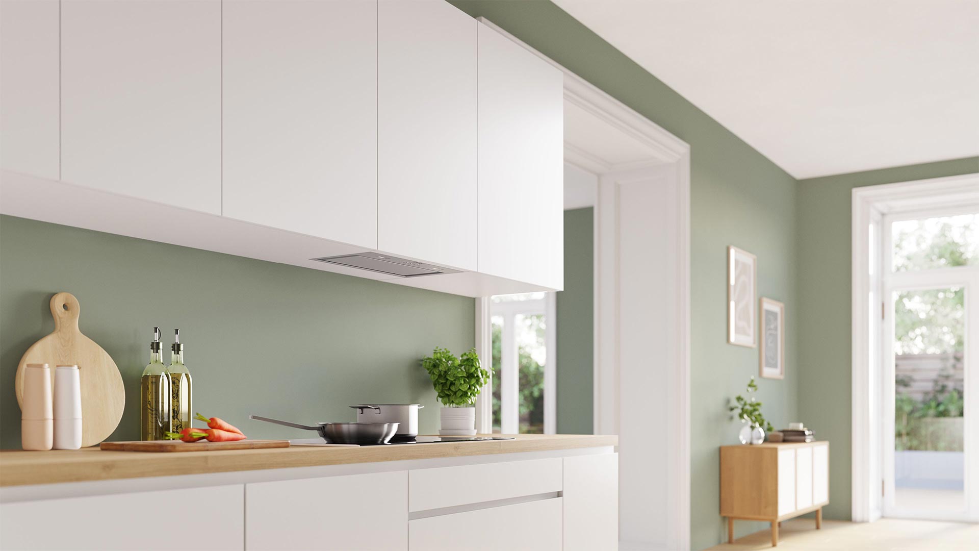 Наша навісна витяжка створена для того, щоб гармонійно поєднуватися з дизайном вашої кухні. Вона спроєктована для повного вбудовування у навісну шафу, тому буде майже непомітною, водночас вражатиме своєю потужністю.