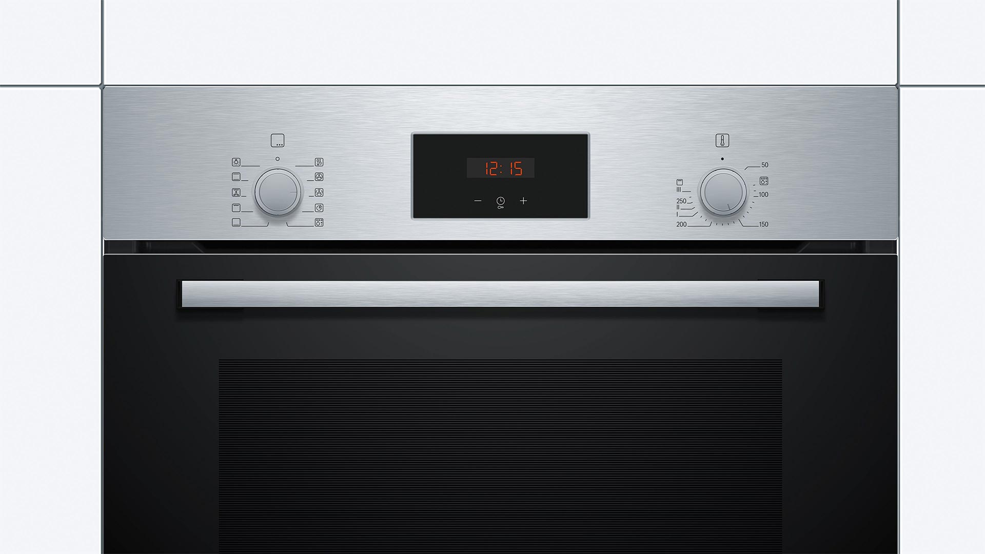 Червоні цифри на дисплеї забезпечують чіткий огляд і просте налаштування функцій часу. Висувні / утоплювані поворотні перемикачі дають змогу легко вибирати потрібний режим і температуру, а також полегшують очищення панелі керування духової шафи та надають їй ще більш вишуканого вигляду.