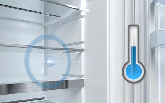 Постійна температура в камері холодильника - вирішальний фактор у досягненні тривалого терміну зберігання продуктів. Датчики FreshSense постійно контролюють і підтримують температуру в холодильному і морозильному відділеннях. Таким чином продукти будуть перебувати в ідеальному стані, коли Ви захочете їх приготувати.