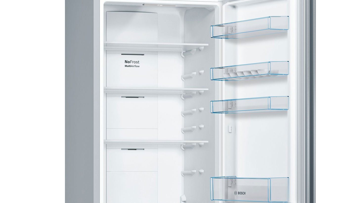 Через нерівномірне охолодження продукти можуть втрачати смак і свіжість. Система MultiAirflow за допомогою вентилятора однаково розподіляє холодне повітря на всіх рівнях у холодильному та морозильному відділах, що мінімізує коливання температури та зменшує час охолодження. Так продукти довше зберігають свої первинні властивості. Свіжість – з голови до п’ят.