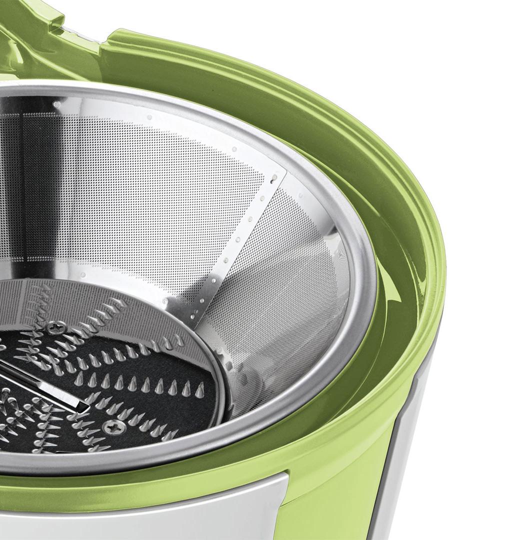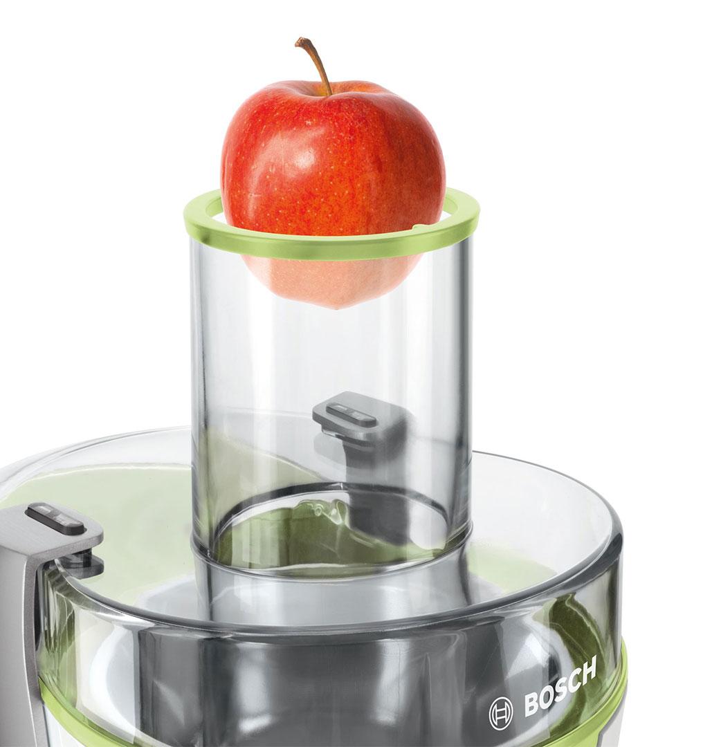 • Збільшений завантажувальний отвір (73 мм) для швидкого і легкого приготування соку з цілих фруктів та овочів