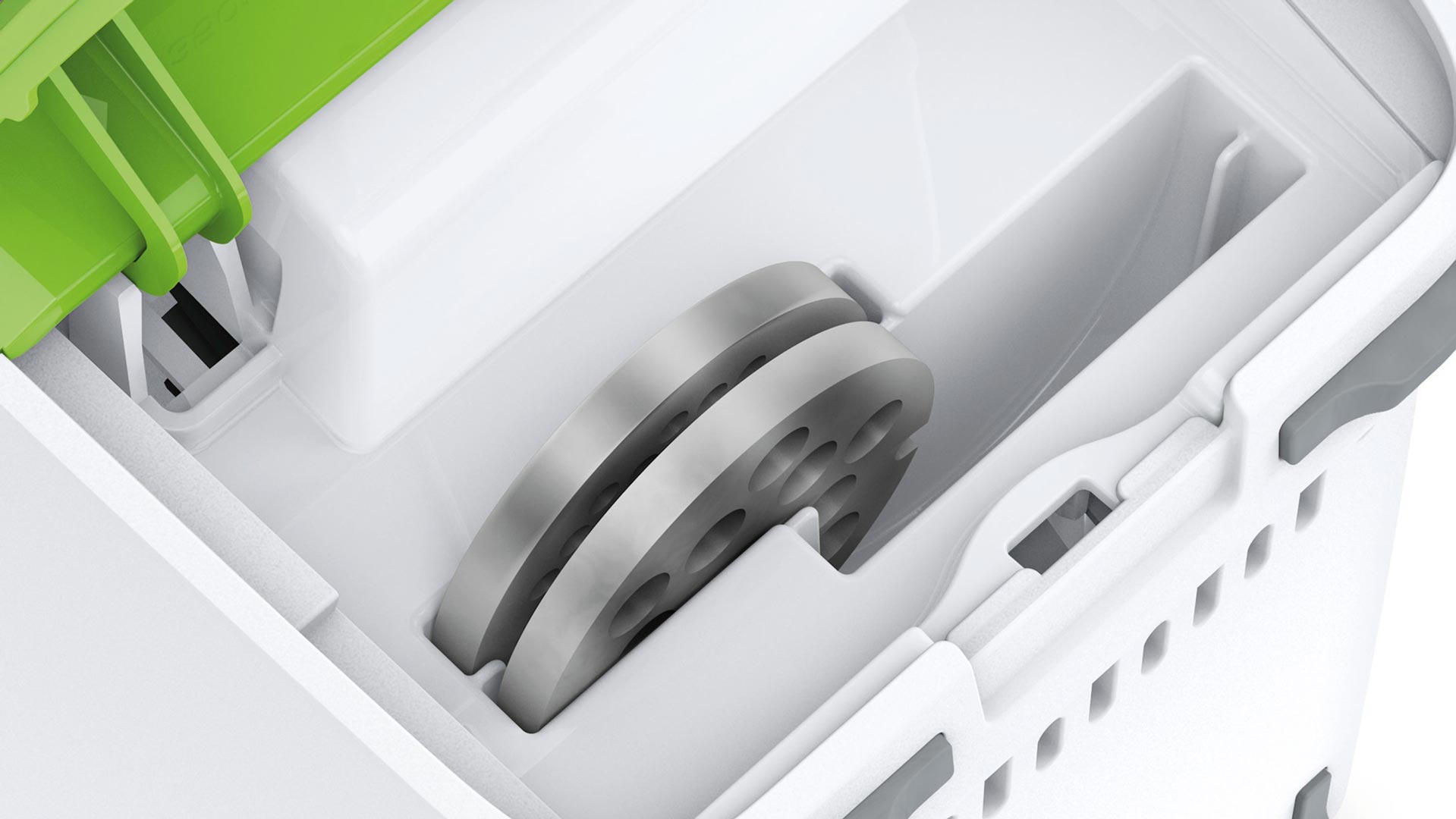 Не можете найти необходимые насадки, потому что они всегда теряются? Эксперты Bosch решили эту проблему и обеспечили в мясорубке отдельный интегрированный отсек для хранения дисков, чтобы они всегда были у Вас под рукой.