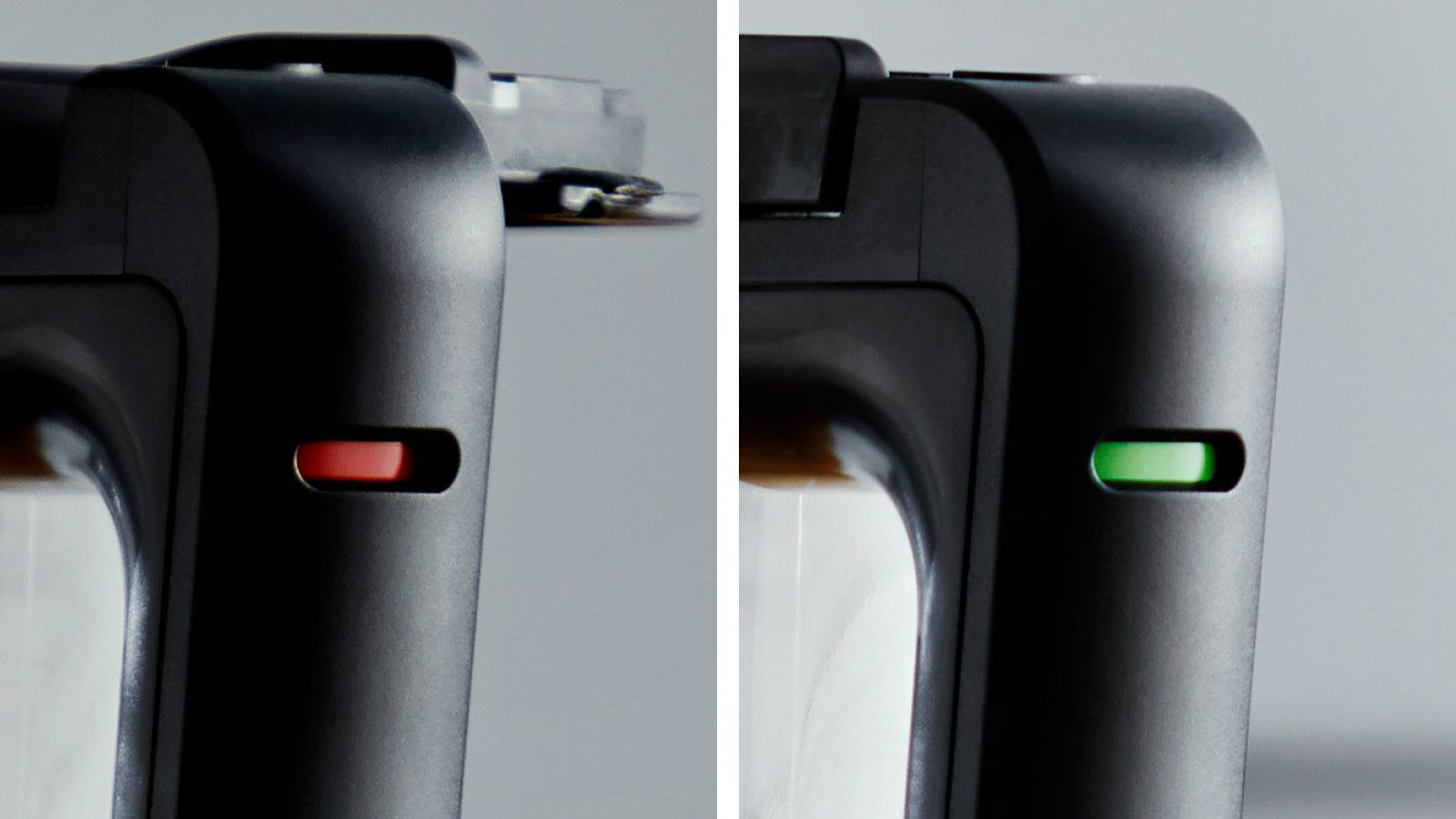 Захисна кришка блендера з кольоровим кодуванням для правильної фіксації. Червоний індикатор - кришка закріплена невірно, зелений - можна починати роботу.