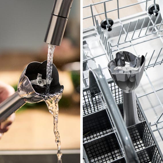 Безпроблемне очищення займає лише кілька секунд. Після завершення змішування зніміть ніжку для змішування одним простим клацанням.