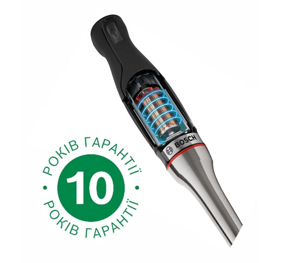 Насолоджуйтесь потужною, надійною та довговічною продуктивністю кухонних приладів Bosch. Ось чому ми пропонуємо безкоштовну 10-річну гарантію на двигун.