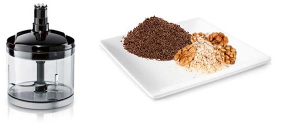 Зручний подрібнювач з гострим ножем із неіржавіючої сталі ріже трави, горіхи, цибулю, м'ясо і сир для смачних соусів, закусок і т.д.