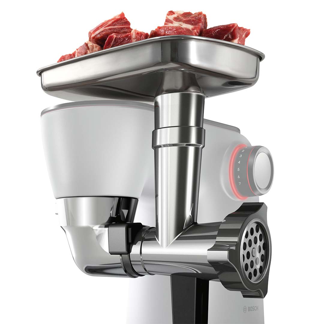 • М'ясорубка з трьома дисками та лотком з нержавіючої сталі в комплекті