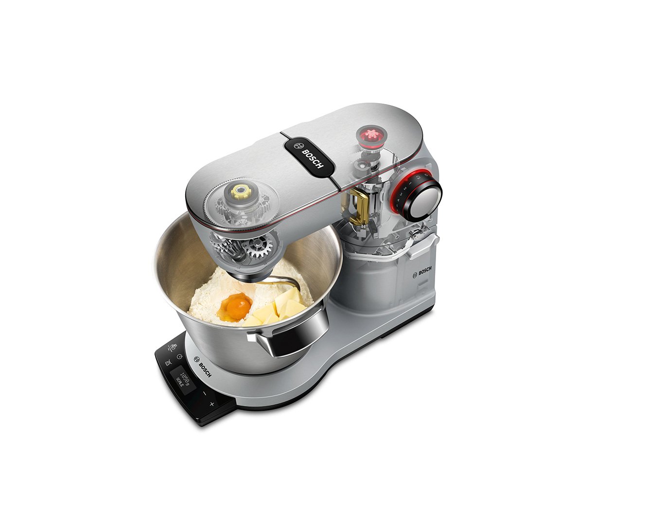 Завдяки вбудованим вагам можна зважувати інгредієнти безпосередньо в чаші або в інших аксесуарах. Це ефективно та економить час, оскільки не потрібно мити ще одну миску після зважування.