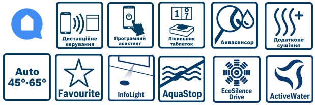 Завдяки технології ActiveWater вдається досягати ідеальних результатів миття за раціонального споживання ресурсів. Вона поєднує швидке нагрівання, ефективну роботу насоса, оптимізовану систему фільтрації та точний розподіл води.