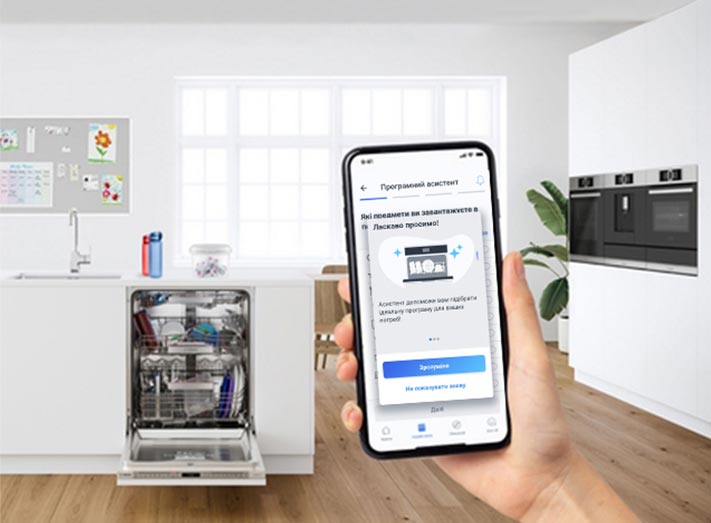 Просто вкажіть у застосунку ступінь забруднення щойно завантаженого посуду, його тип та пріоритетні вимоги до циклу, і асистент підкаже оптимальну програму.
