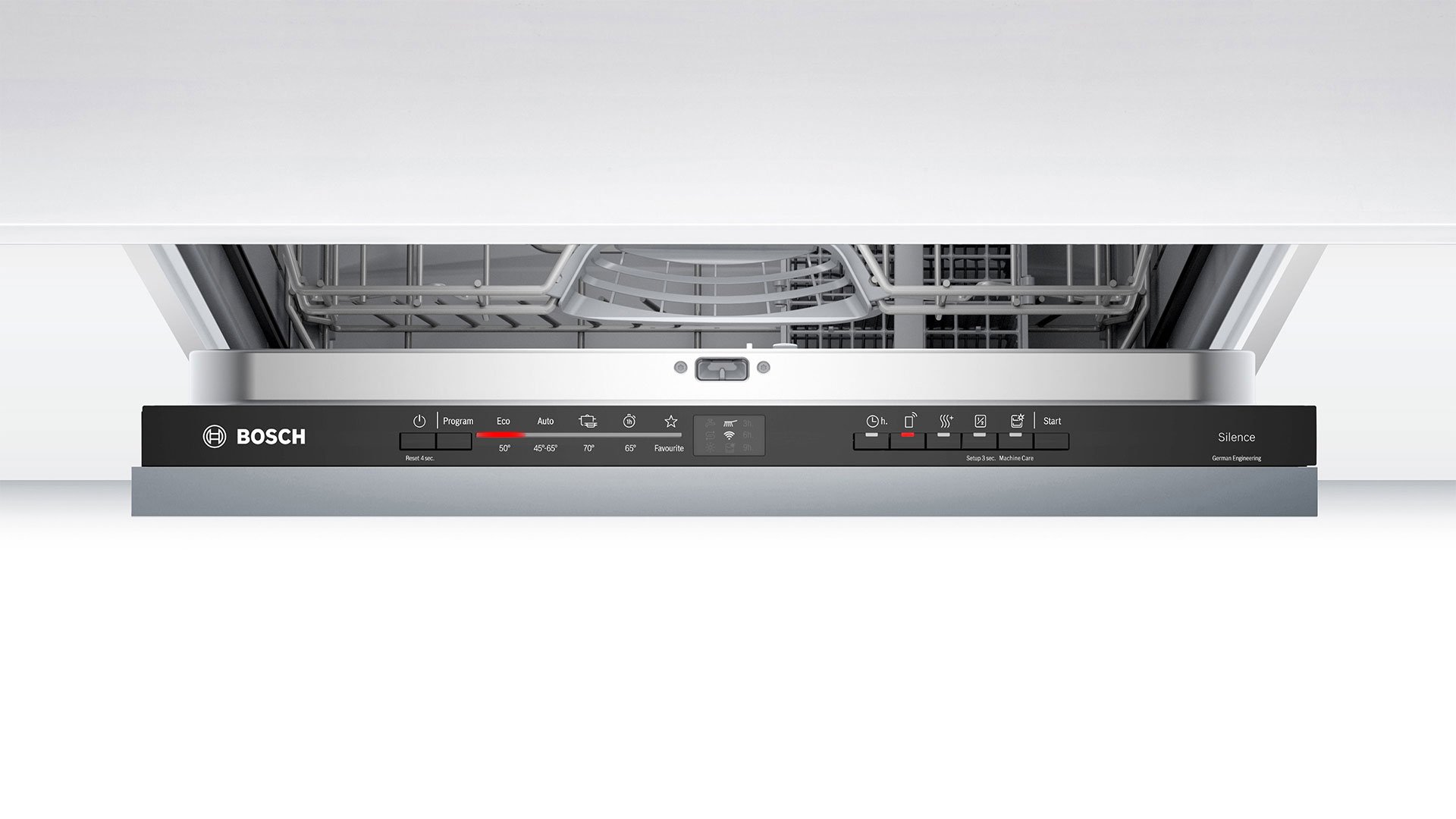 Програма «Auto 45°-65°» автоматично регулює температуру води та тривалість полоскання протягом циклу миття залежно від кількості та забруднення посуду. Це дозволяє ефективно використовувати воду без компромісу щодо якості миття.