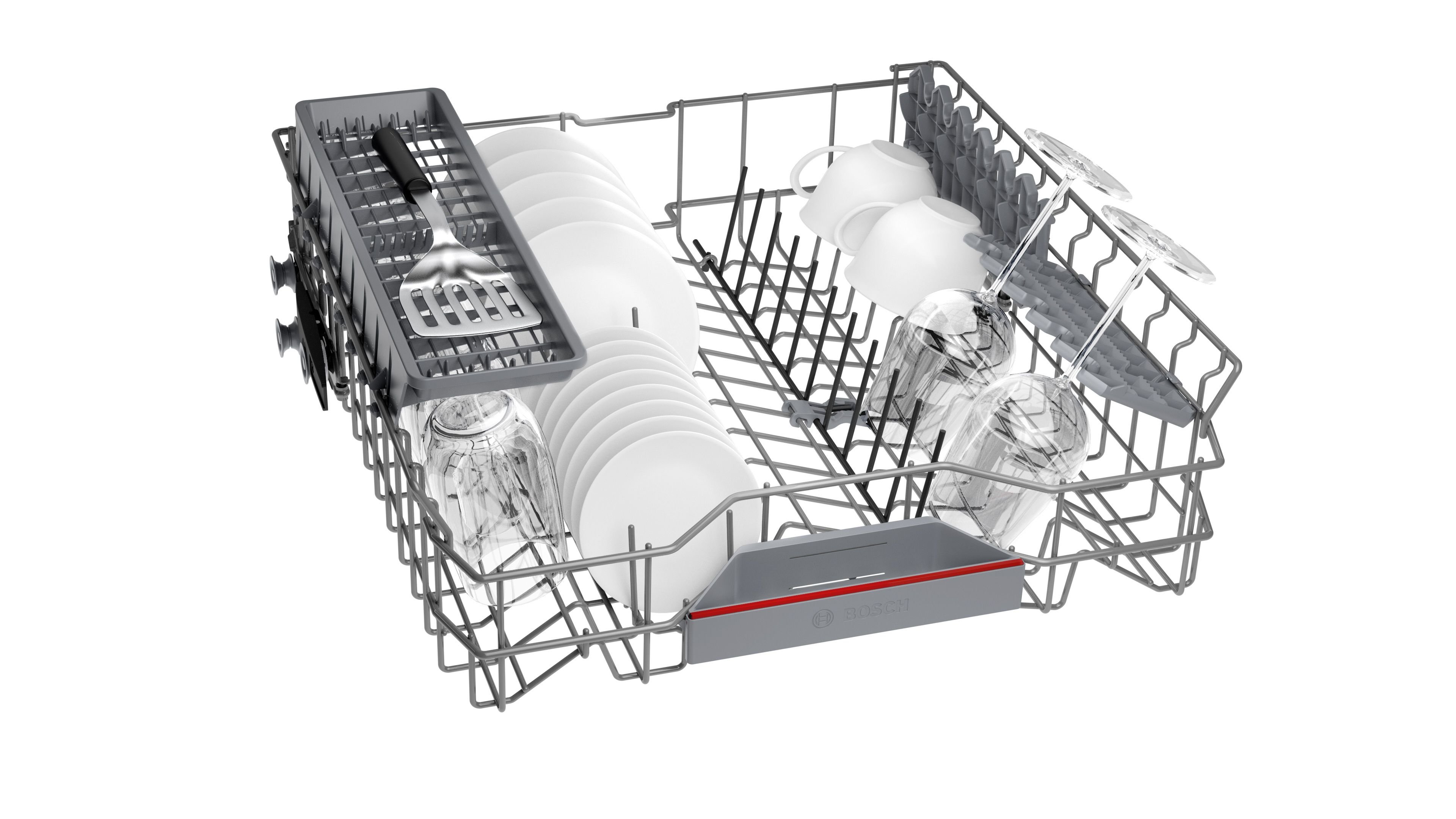 • Верхній короб з системою 3-рівневого регулювання по висоті Rackmatic 2 доладні грати для тарілок у верхньому коробі 4 доладні грати для тарілок в нижньому коробі Дві полички для чашок у верхньому коробі 2 відкидних полички для чашок в нижньому коробі
