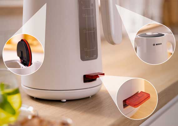 Більша гнучкість і зручне положення ручки. Оскільки шнур підключений до бази, чайник можна носити
