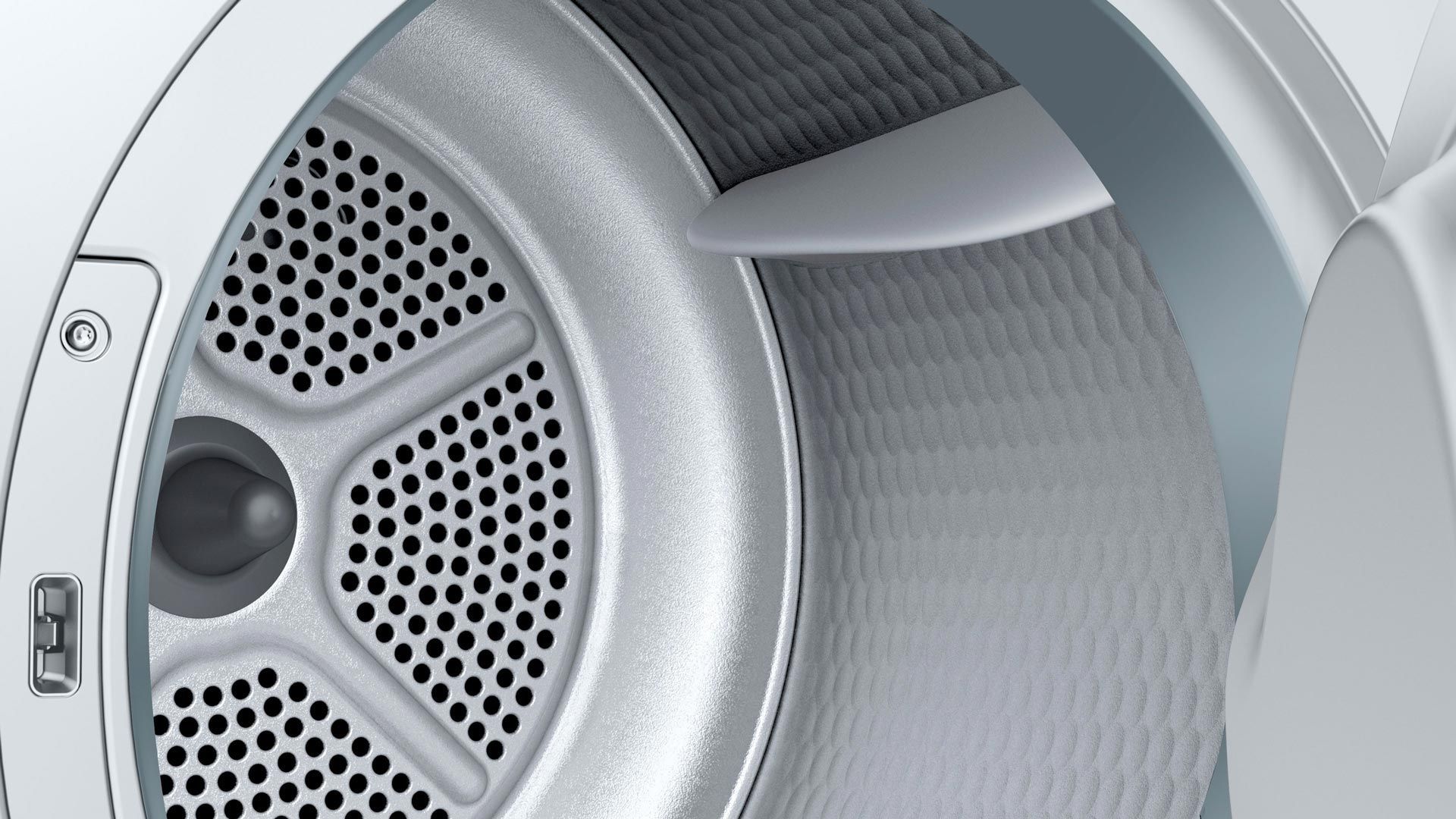Багатопотокова система сушіння Sensitive Drying System: великий гальванізований барабан зі спеціальною структрою для надзвичайно дбайливого сушіння білизни, з захватами softDesign