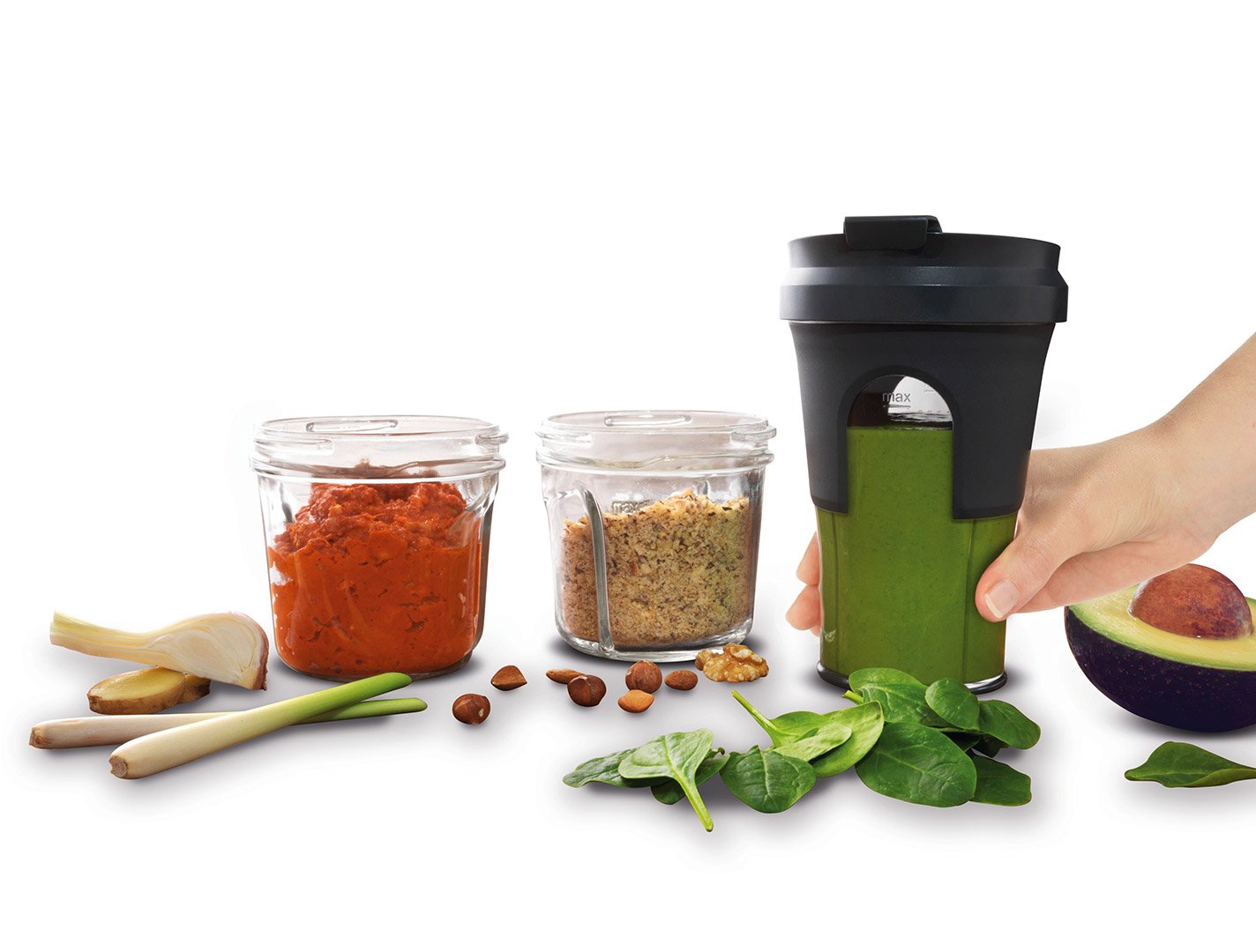 • 5 в 1 набір аксесуарів для подрібнення: блендер, подрібнювач, насадка для нарізання, контейнер для зберігання та ToGo версія
