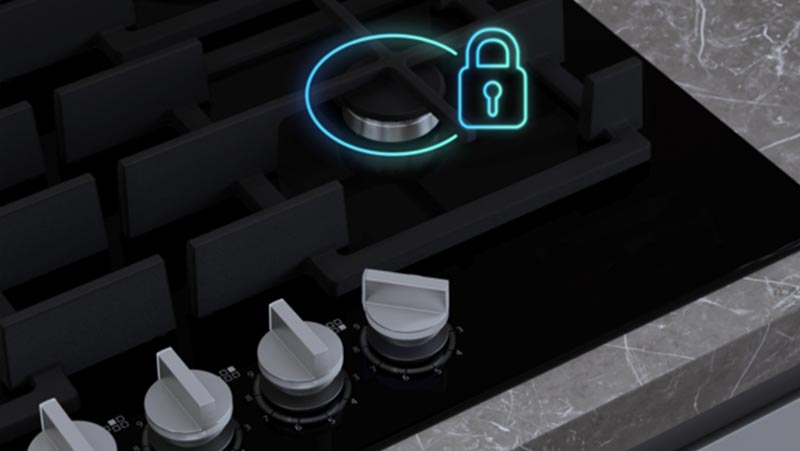 Регулятори вогню легко знімаються для очищення та забезпечують додатковий захист. Після зняття зовнішніх ковпачків мініелемент перемикача закриває внутрішні частини, захищаючи їх від пролиття рідини. Крім того, зовнішній корпус і мініелемент легко фіксуються за допомогою магнітів. Розташування перемикачів з правого боку звільняє місце для розміщення великого посуду.