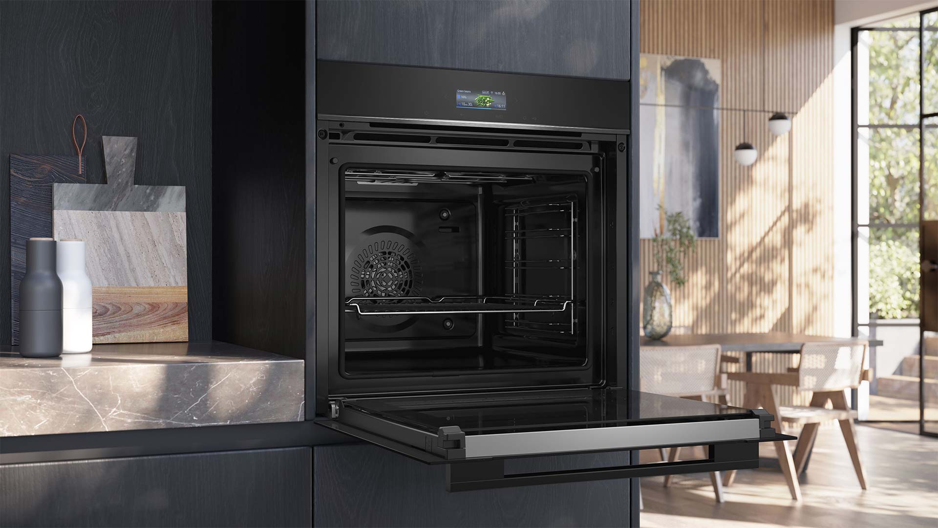 Режими приготування3D гаряче повітря • помірне гаряче повітря • піца • нижнє нагрівання • гриль, велика площа • гриль, мала площа • гриль з конвекцією • верхнє/нижнє нагрівання • верхнє/нижнє нагрівання помірне • підтримання страв у гарячому стані • томління/слабке нагрівання • попереднє підігрівання посуду • функція coolStart