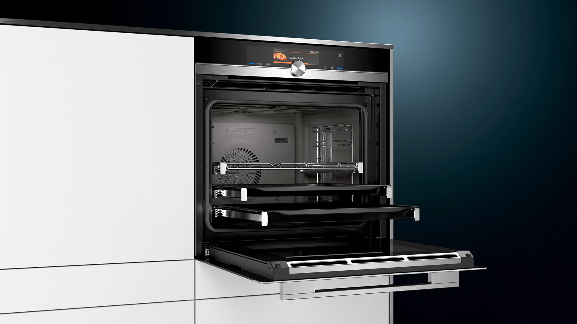 Режими приготування4D-гаряче повітря • піца • нижнє нагрівання • гриль, велика площа • гриль, мала площа • гриль з конвекцією • верхнє/нижнє нагрівання • верхнє/нижнє нагрівання Еко • підтримання страв у гарячому стані • томління/слабке нагрівання • гаряче повітря Eco • інтенсивне нагрівання • підсушування • попереднє підігрівання посуду • функція coolStart