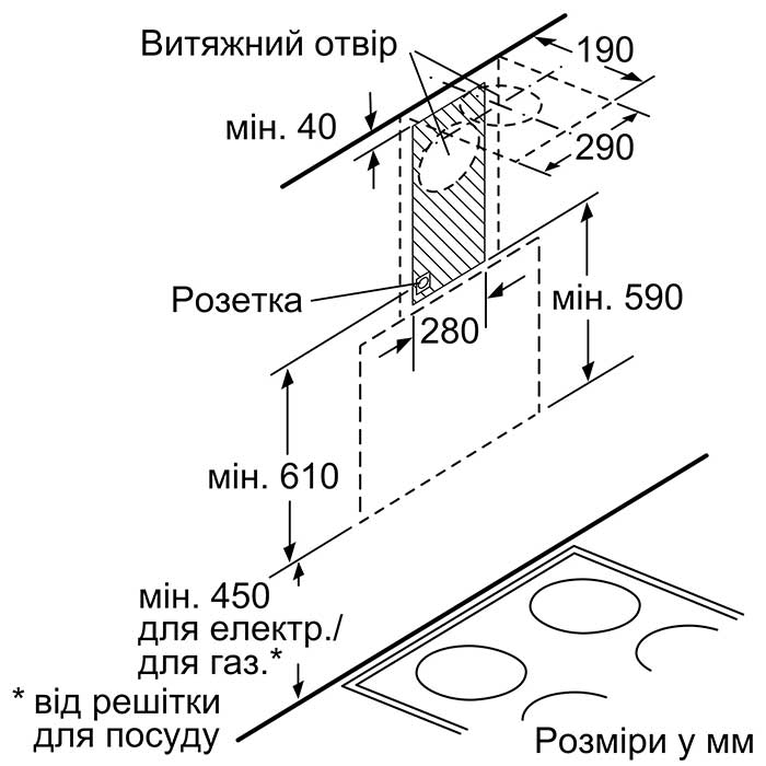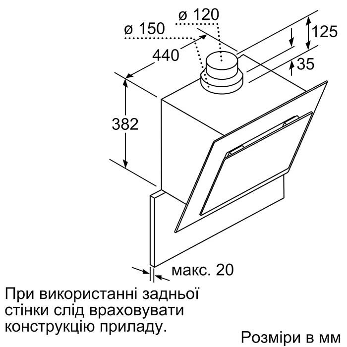 Діаметр вихідного патрубка: 150 мм (патрубок Ø 120 мм у комплекті)