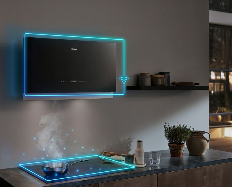 • cooktop: автоматично вмикає витяжку під час приготування їжі завдяки WiFi-з'єднанню витяжки та відповідної варильної поверхні
