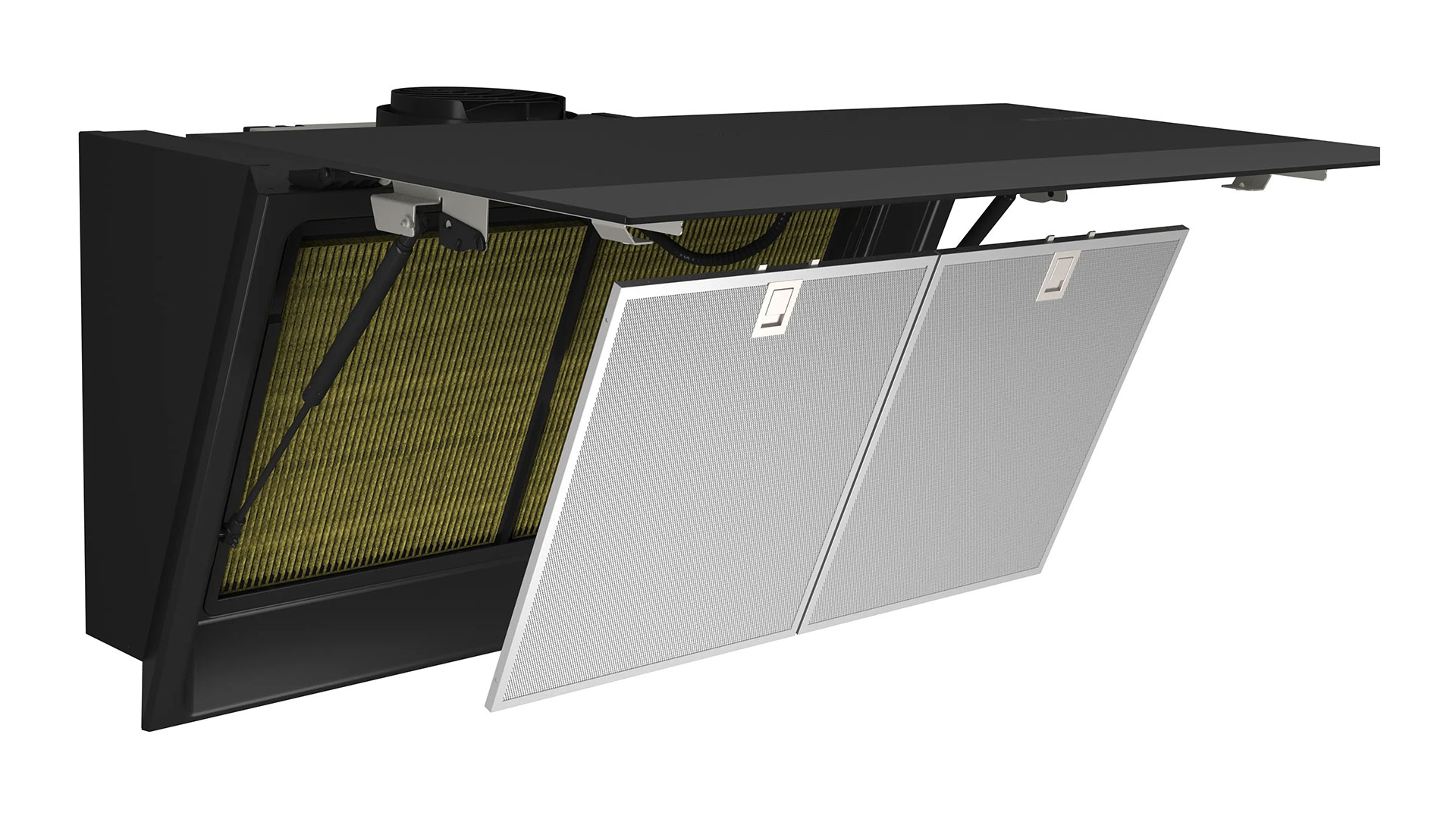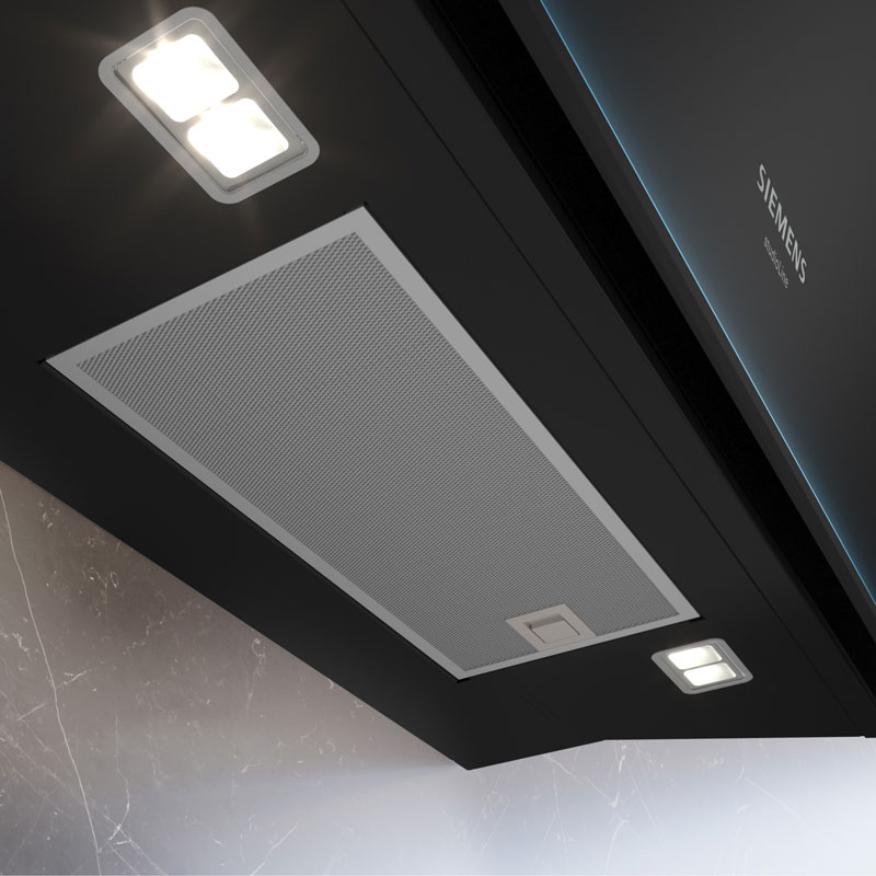 Ми полегшили кожен аспект обслуговування: витяжка має похилу конструкцію з великим кутом відкриття для швидкого доступу до фільтрів, які можна мити у посудомийній машині. Індикатор автоматично нагадає вам про необхідність їх очищення, щоб витяжка завжди працювала на піку своєї ефективності.