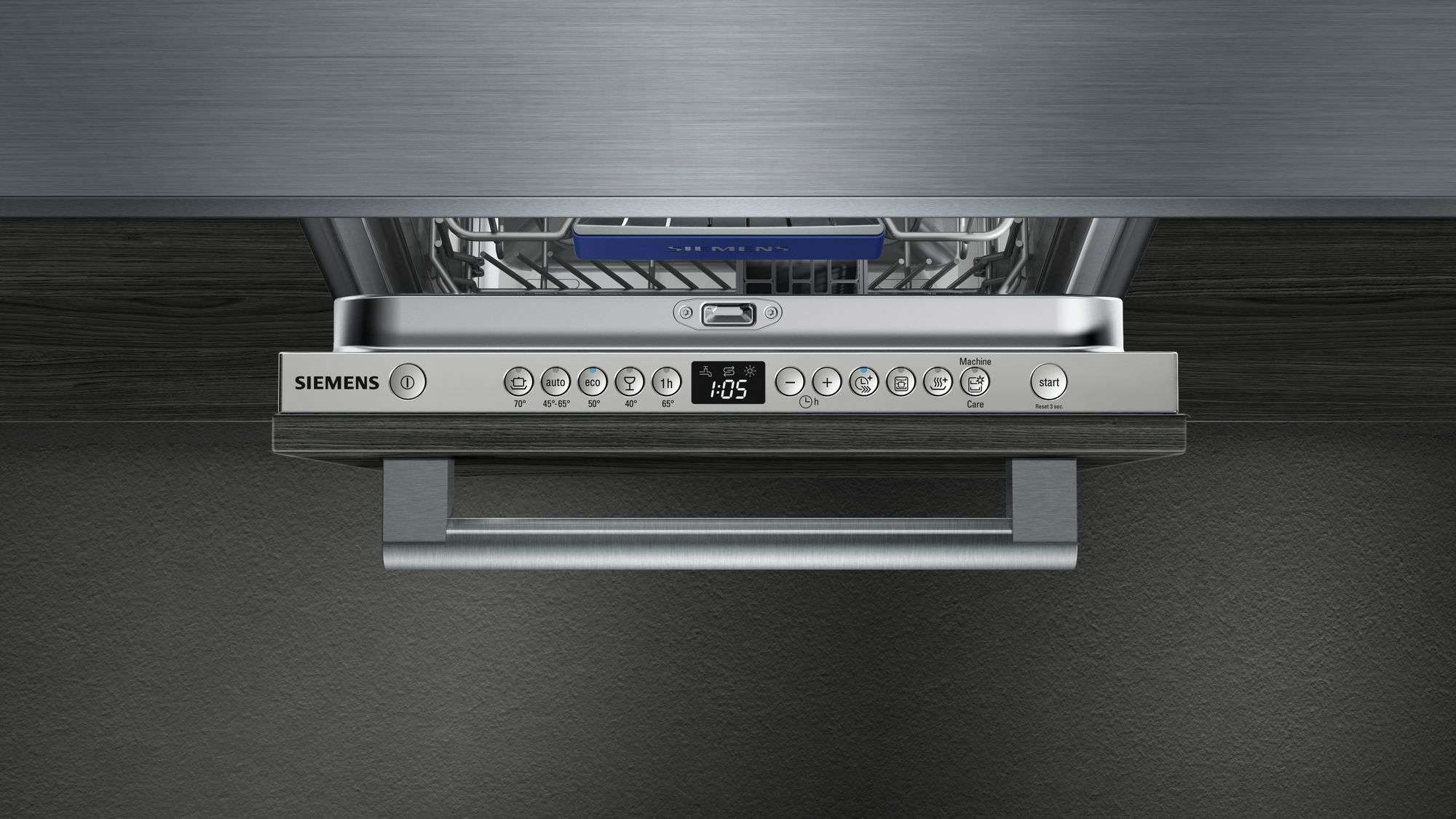 5 програм: "Інтенсивна 70 ° C", "Автоматична 45-65 ° C", "Економічна 50 ° C", "Стекло 40 ° C"