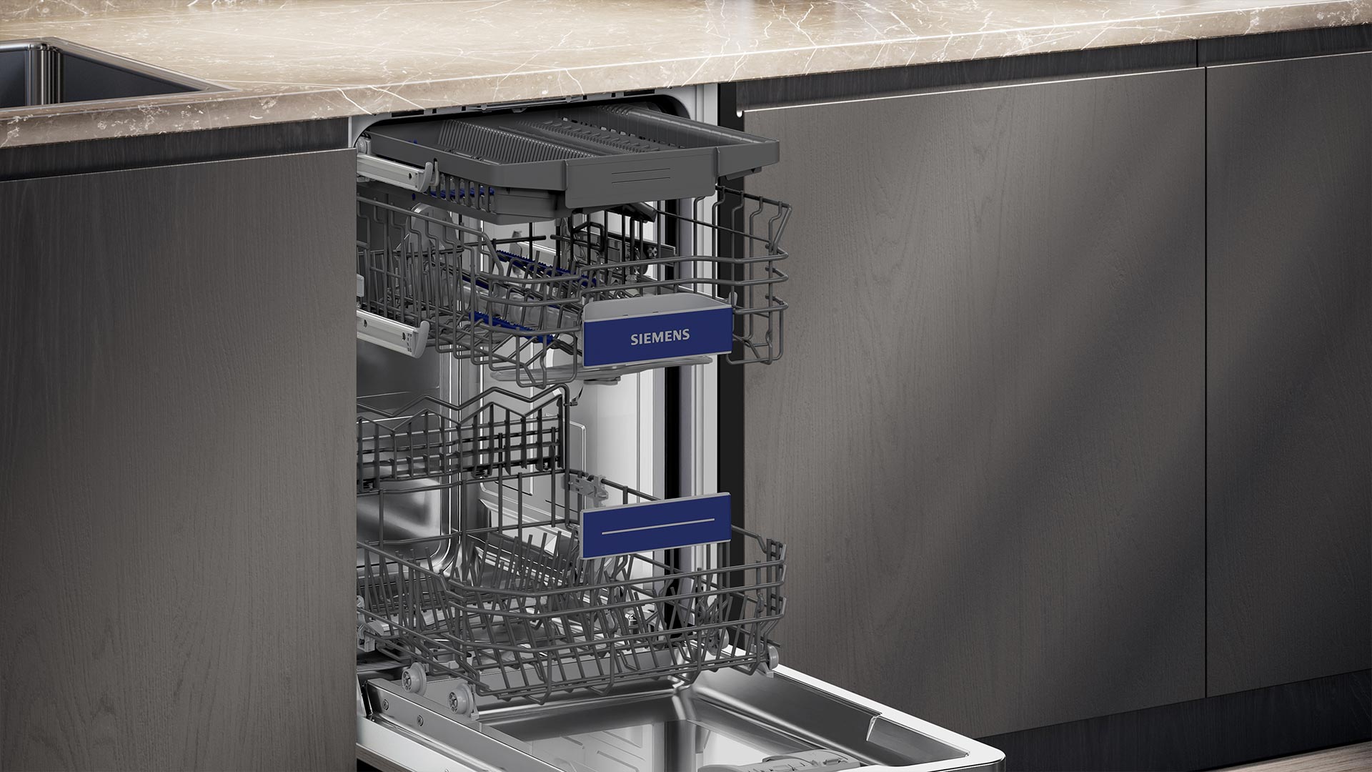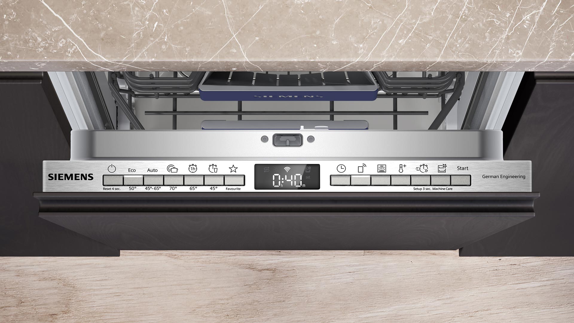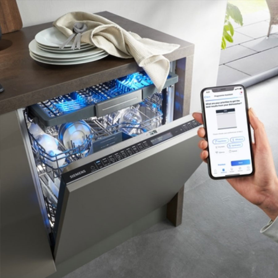 Технологія Home Connect дає змогу під’єднати посудомийну машину до мережі Wi-Fi та керувати приладом із мобільного застосунку. Вибирайте програми та опції, налаштовуйте параметри та запускайте миття посуду віддалено, коли вам зручно. Перебіг циклу також буде відображено в застосунку.