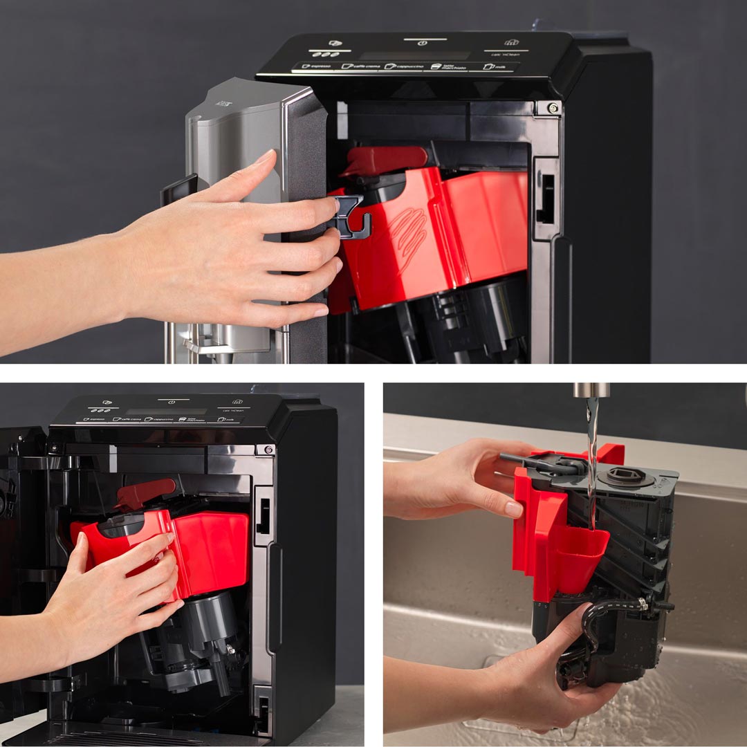 Кавомашина обладнана системою Calc`nClean, яка автоматично очищає і видаляє накип. Кавова машина має знімний блок заварювання, який легко виймається й миється під проточною водою. Також під час ввімкнення і вимкнення кавомашини система автоматично промивається, що забезпечує чистоту і свіжість води.