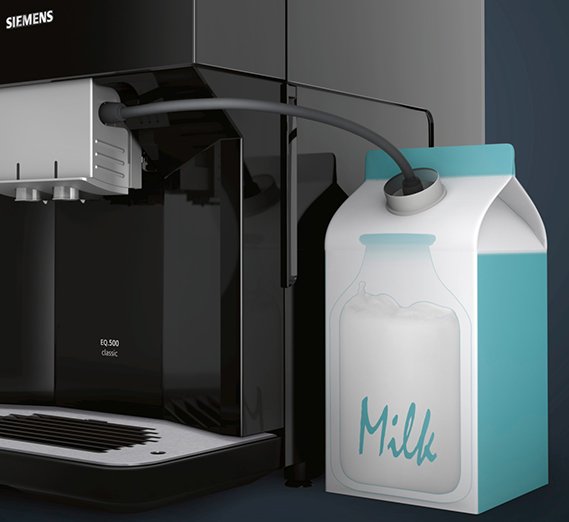Зручна система забору молока дає можливість використовувати як окремий контейнер для молока (купується окремо), так і картонну упаковку, яку зручно ставити біля кавомашини.