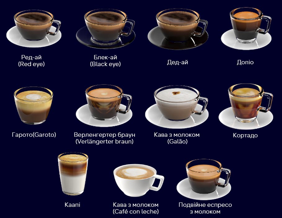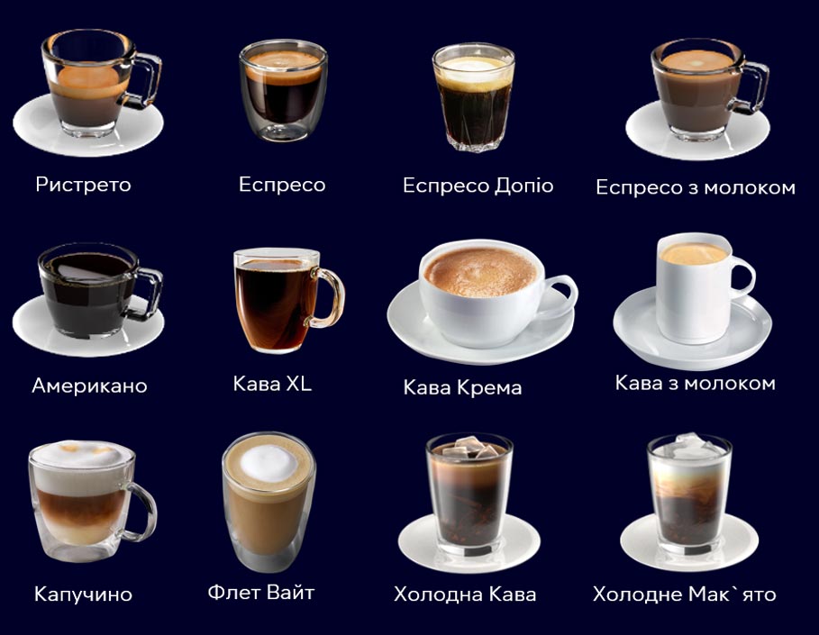 Надзвичайно великий вибір кавових напоїв з усього світу