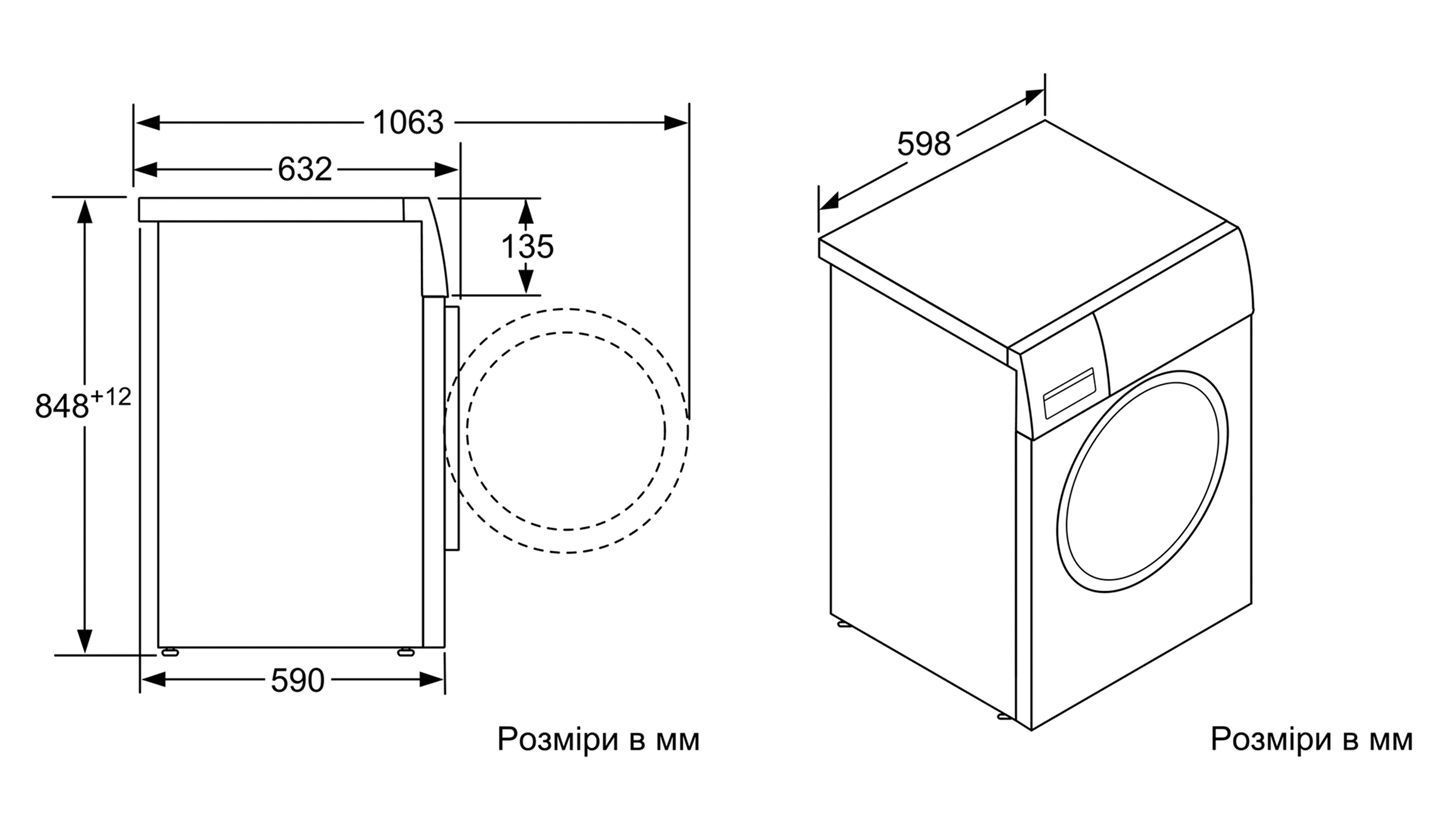 Діаметр отвору завантажувального люка: 32 см, кут відчинення дверцят: 171°